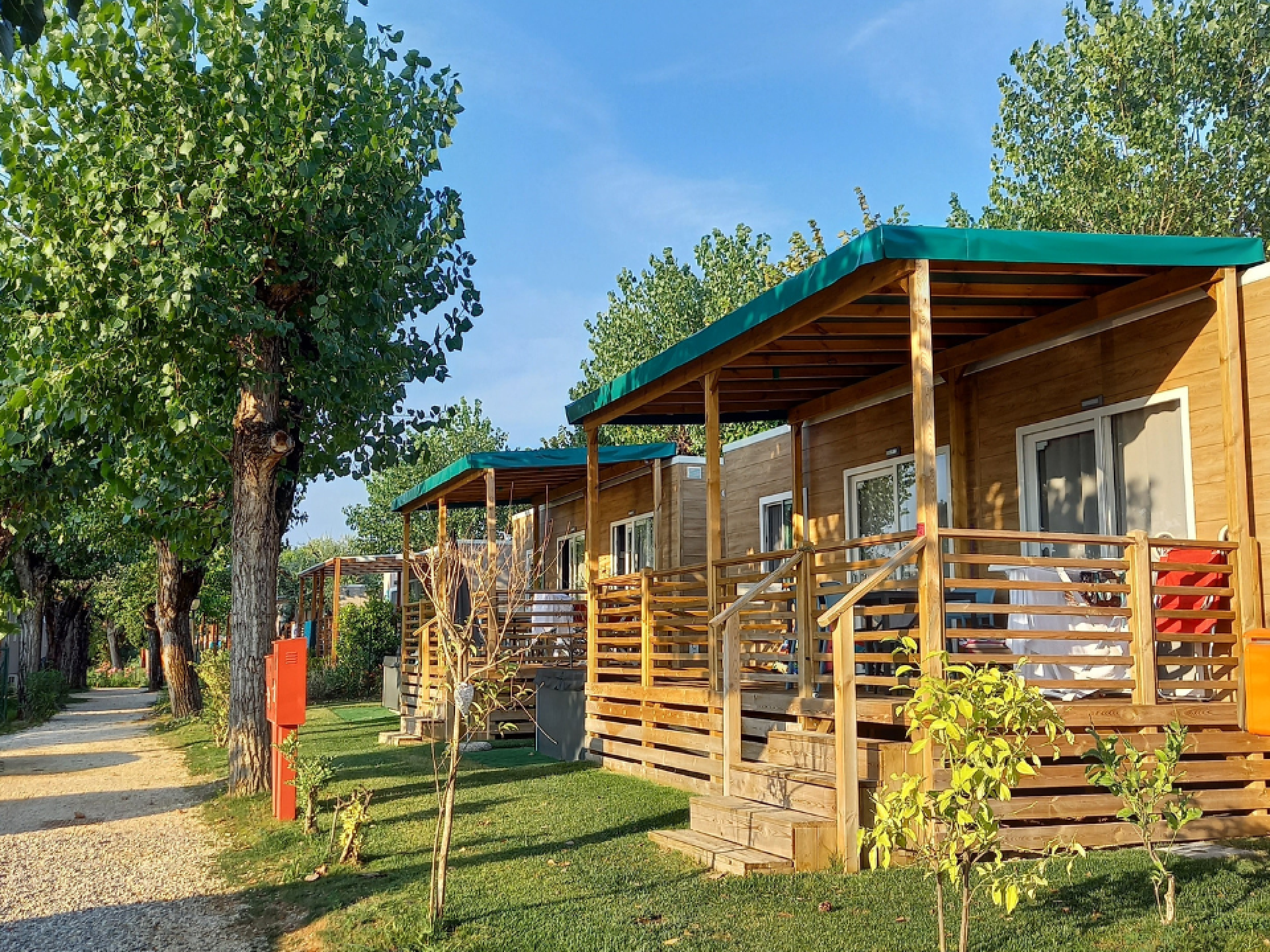 Das Mobilheim PANORAMA SPA DOG, das für einen entspannten und ruhigen Urlaub konzipiert wurde, bietet Platz für 5 Personen in einem Schlafzimmer mit Doppelbett und einem Schlafzimmer mit drei Einzelbetten, wovon eines ein ausziehbares Bett ist. Jedes Zimmer hat einen direkten Zugang zu einem eigenen Bad mit WC, Waschbecken und Dusche. Der Wohnbereich ist mit Induktionskochfeld, Kühlschrank mit Gefrierfach, Mikrowelle, amerikanischer Kaffeemaschine und Wasserkocher ausgestattet. Ein Schlafsofa steht in der Küche zur Verfügung. Draußen gibt es eine schöne möblierte überdachte Terrasse mit Panoramablick und privatem Whirlpool im Garten. 33 Quadratmeter. Ein Parkplatz ist inbegriffen. Maximal 2 Haustiere erlaubt.
