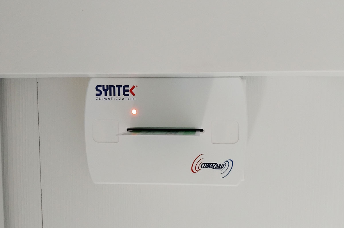 L’impianto di condizionamento dell’aria si attiva inserendo la tessera nell’apposito lettore , chiamata “clima card”, che sarà consegnata al check in. La clima card è precaricata con 56 ore settimanali da utilizzare a piacimento, per soggiorni inferiori si calcolano 8 ore al giorno di carica.