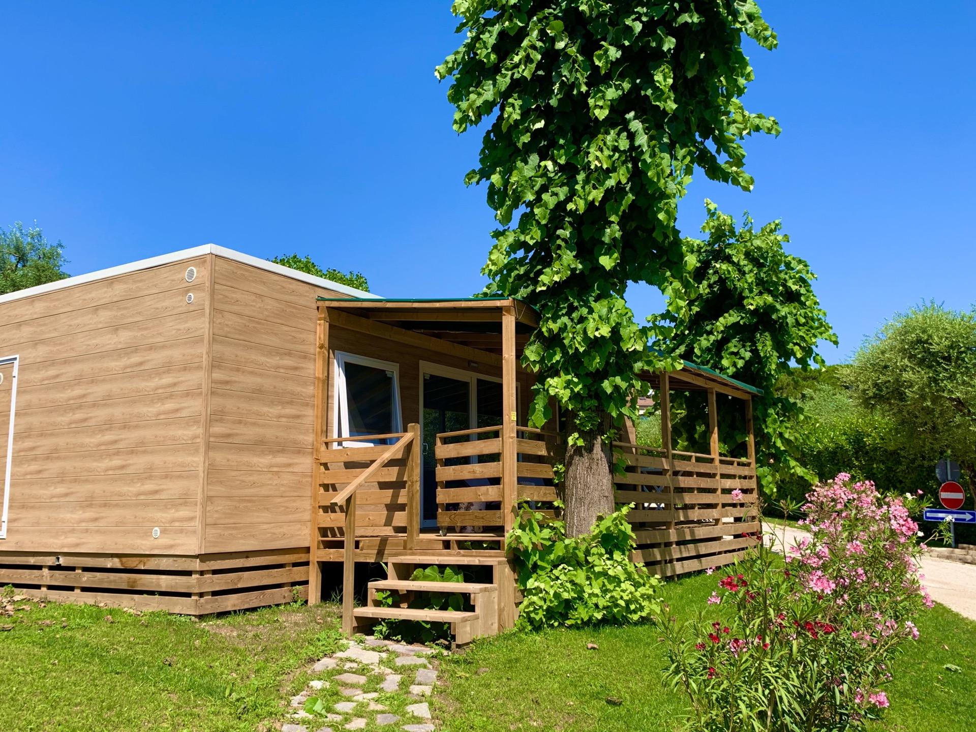 La casa mobile EXTRA LARGE DOG con una superficie di 44 m², offre ampi spazi funzionali e confortevoli; la sistemazione dispone di soggiorno con aria condizionata, angolo cottura con piastra a induzione e divano, 1 camere da letto matrimoniale, 1 camera da letto con 3 letti singoli (di cui uno a soppalco) e 2 bagni con Wc, doccia e lavabo. All’esterno veranda coperta (8 x 2,5 m) con cancelletto. La casa può ospitare 5 +1 persone (6° persona su richiesta e a pagamento). Un posto auto incluso. Massimo 2 animali domestici ammessi.