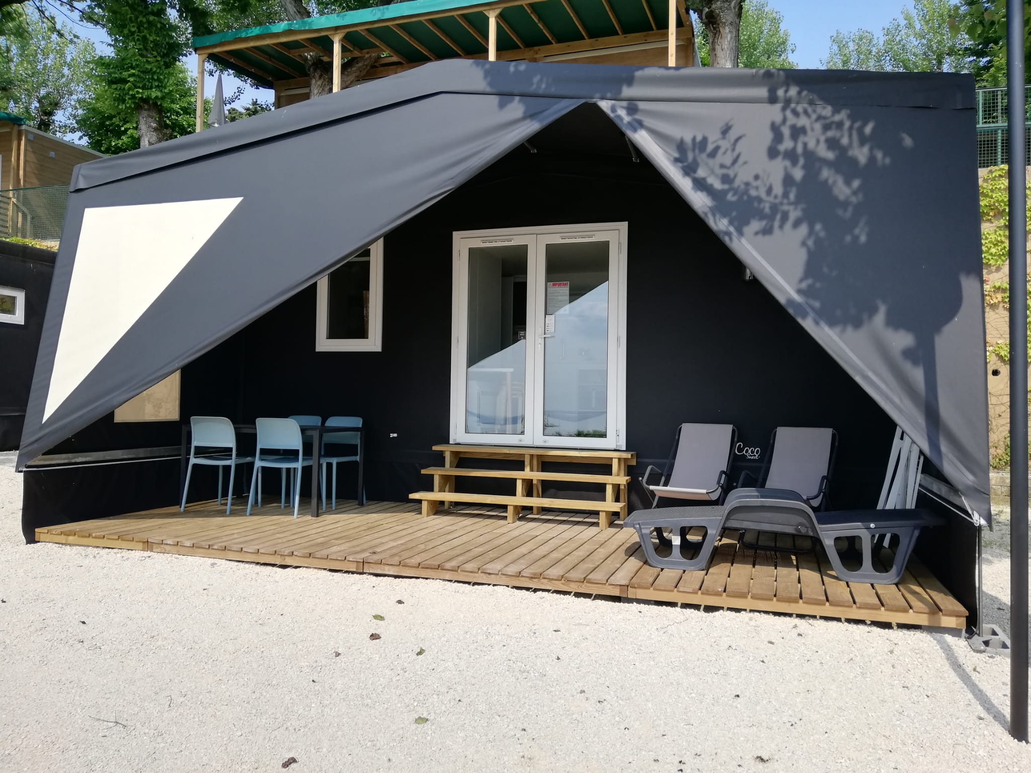 Al Campeggio della Colombaia a Padenghe sul Garda, troverai tende glamping spaziose e dotate di ogni comodità: letti comodi, bagno privato, cucina attrezzata e una veranda dove rilassarsi con la tua famiglia o la tua dolce metà. Nessuna perdita di tempo a montare e smontare la tenda e sopratutto niente stress quando fai i bagagli perché le nostre tende glamping sono attrezzate di tutto, di lenzuola e asciugamani compresi. Un’ottima soluzione per vivere il piacere di un soggiorno immerso nel verde, con la libertà di vivere all’aria aperta e il lusso di sentirsi a casa.
